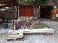 Zrodil se tenkráte základ naší huti, pracujeme spolu příležitostně dodnes. Sochař sám na velké zakázce neobstojí bez zázemí. Vylomení bloku, transport, předsekání hrubých tvarů a pak pomoc s osazením dokončené sochy je možné udělat pouze s těmi, se kterými chcete zažít, co byla kamenická huť při velkých stavbách. Toto vědomí přežívá, nelze jej zapomenout, pokud jím člověk jednou projde.