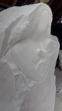 Odjel jsem do italské Colonnaty a tam na soše dva měsíce pracoval. Pracoval jsem v lomu, kde chodí málo lidí, ale občas nějací návštěvníci příjdou. Vše je otevřené. Jeden den položil na sokl rozpracované sochy někdo malou kytku. Pochopil, co dělám. Lomaři zde mají obrovskou úctu k Panně Marii, chrání je. V každé vesnici v horách u Carrary je soška "Madonna per Cavatore". Ochránkyně lomařů. Pracoval jsem potom ještě doma v ateliéru. Nevadilo, že jsem termín nestihnul o půl roku. Manželé měli úžasné pochopení. Osazoval jsem ji poslední den před adventem. Myslím, že tato socha svůj příběh žije.