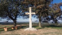 Původní jeho myšlenku postavit nad obcí na kopci kříž ke stému výročí republiky jsem rozvedl v možnost vytvořit symbolický Strom života. Příběh, kdy se jednotlivé roky, kmeny a větve událostí proplétají, rostou. Na konci větví rostou lipové srdčité listy. Je to kamenný záznam živého setkávání horizontály a vertikály našich událostí. Křesťanský symbol.