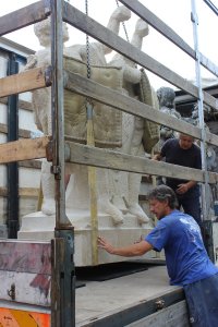 započala složitá pouť dvou jeden a půl tunových soch za oceán. Sochy
