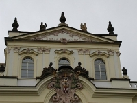Rok práce, rok společně s pískovcem, který se jmenuje Libná a rok se sochami malých andílků. Rok práce, kdy jsme spolu s kameníkem Hynkem Schejbalem a restaurátorkou Luckou Trunečkovou trealizovali kopie soch pro vstupní bránu břevnovského kláštera. Sochařskou výzdobu brány v roce 1740 vytvořil Karel Josef Hiernle. Sochu svatého Benedikta, velkou kartuši se znakem kláštera, kterou nesou dva andílci i dva velké anděly s insigniemi opatství vytesal z jemného hlinitého pískovce. Po 250 letech byl stav této krásné sochařské výzdoby takový, že hrozil pád z brány. Před 20. lety byly provedeny kopie levého anděla a sv. Benedikta. Kdo je sekal nevím, snad to zjistím. Nyní došlo na ostatní sochy. Sundali jsme je jeřábem a odvezli do ateliéru. Lucka poslepovala originál, domodelovali jsme jej, Hynek přivezl blok z Libný, osekal jej nahrubo a pak jsem mohl vytesat povrch do definitivního tvaru. Tohle čtyřikráte dokola. Celý rok závod s časem. Jak sochy v ateliéru vylézaly z kamene dávala jim moje dcerka jména. Velký pravý anděl s mitrou se jmenuje Floriánek, levý andělíček který nese kartuši je Vojtíšek, pravý je Tonda. Je to tím, že jsme při tom četli pohádkovou knížku Z notesu svatého Petra. Dnes jsem poprvé viděl portál bez lešení. 29. listopadu 2009.